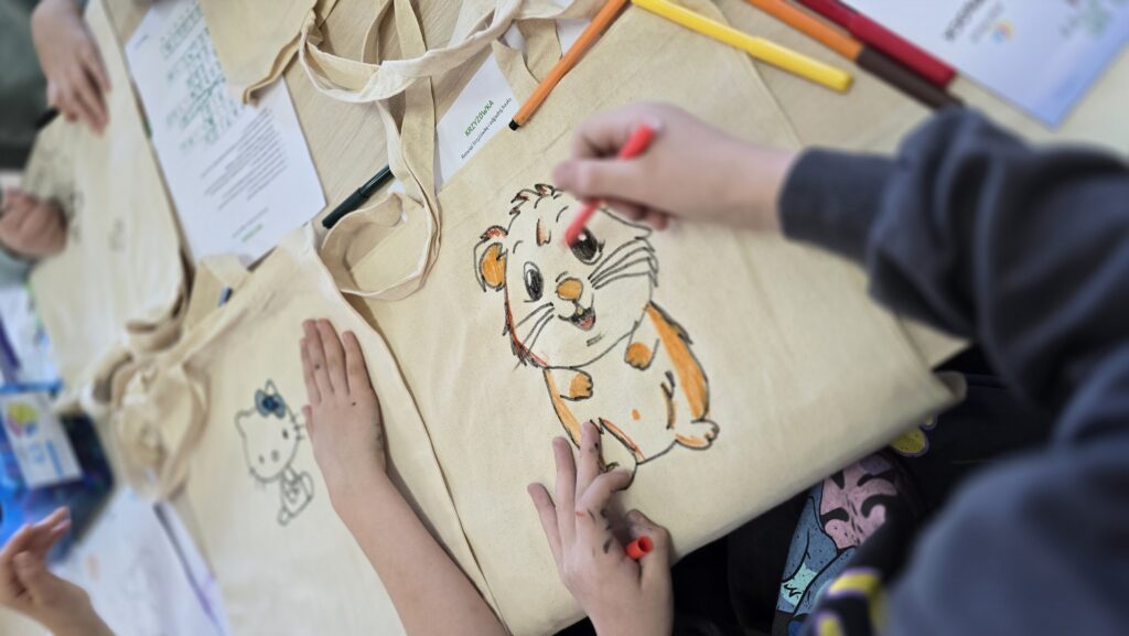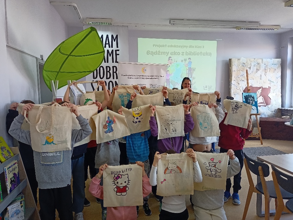 9 i 10 kwietnia spędziliśmy z uczniami klas trzecich w Bibliotece Szkoły Podstawowej nr 22 im. Janusza Korczaka w Płocku. Rozmawialiśmy o ważnych tematach związanych z ochroną środowiska, ekologią i recyklingiem, utrwalaliśmy wiedzę na temat segregacji odpadów. Dla sprawdzenia już nabytej wiedzy, rozwiązaliśmy eko-krzyżówkę, oczywiście dla najlepszych i najszybszych były nagrody. Dodatkową atrakcją było malowanie bawełnianych toreb na zakupy.